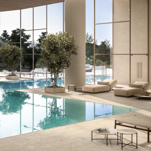 Die keramische Outdoorplatte erfreut sich großer Beliebtheit bei der Gartengestaltung, genauso wie beim Anlegen von Pool- und Whirlpoolumrandungen. Speziell für den Außenbereich wurde das Feinsteinzeug in 2 cm bzw. 3 cm Stärke und mit rutschfester Oberfläche entwickelt. Frostsicher, resistent gegen Streusalz, licht- und farbecht sowie pflegeleicht in der Reinigung – diese Eigenschaften sind die Vorteile dieses Materials. Formteile für die Poolumrandung ergänzen das Programm und ermöglichen eine einheitliche Gestaltung. Die Vielfalt an Farben, Formaten und Oberflächen lässt keine Wünsche offen. Die Keramikplatte kann auf Splitt, Stelzlagern oder fest verklebt verlegt werden.
