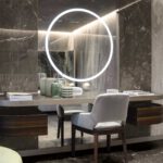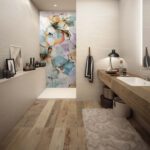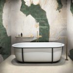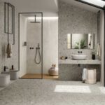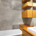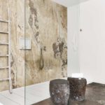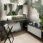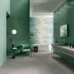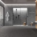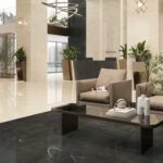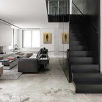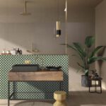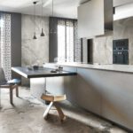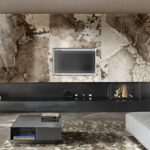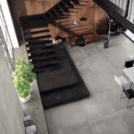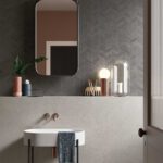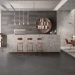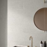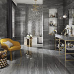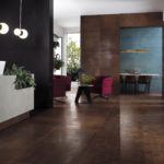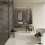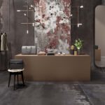 Großformate entfernt die Menge und Wahrnehmung der Fugen, indem es die optische Wirkung der Erweiterung des Raumes und eine große grafische Reinheit, Harmonie und ästhetischen Realismus erzeugt. In Kombination mit dem metallischen Look verstärken sich diese Eigenschaften besonders.