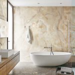 Die Vielfalt der verfügbaren Formate und Stärken erhöht die Qualität und die Vielseitigkeit der gesamten Auswahl an Marmor-Oberflächen und bietet verschiedenste Lösungen, je nach Anforderung; egal, ob horizontal oder vertikal, im Wohnraum oder Verkaufsraum, innen oder außen.