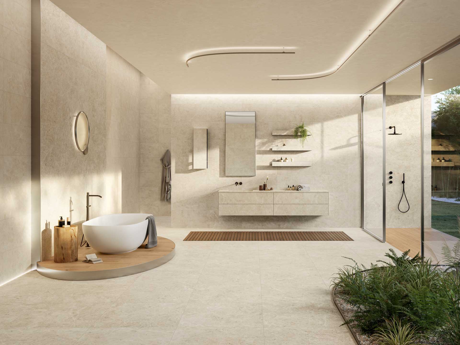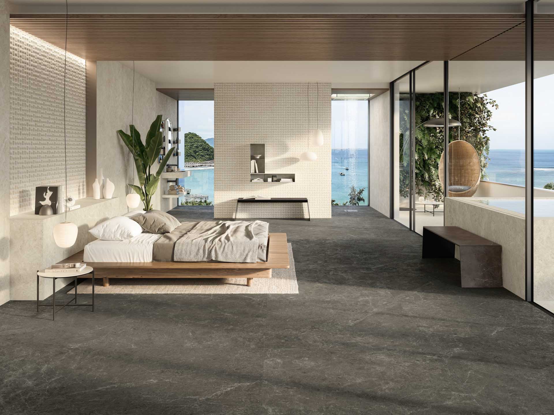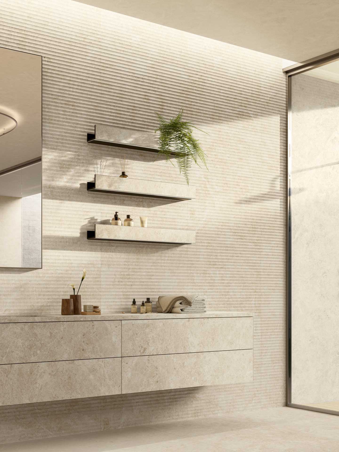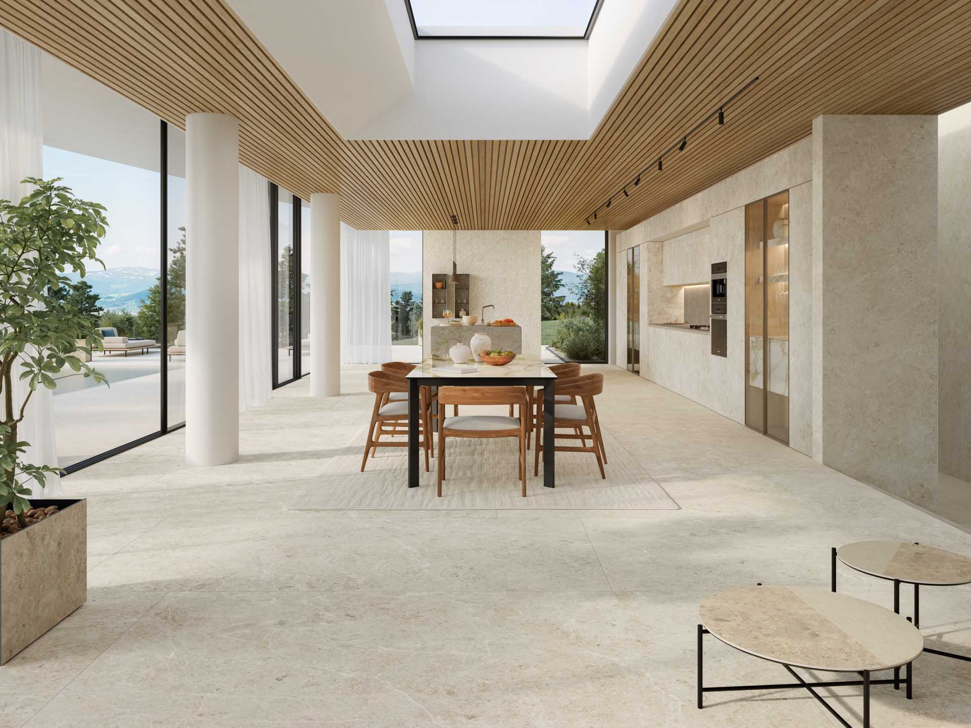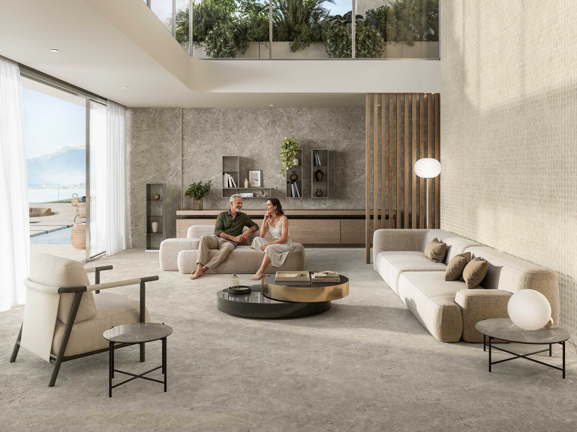 Maserungen, Farben und Materialeinschlüsse sorgen für eine edle Oberfläche mit klaren und zahlreichen natürlichen Details für einen zeitgemäßen Stil. Der Stein, natürlich, elegant und markant, wird hier neu dargestellt. Für alle, die in Harmonie mit der Umwelt leben.